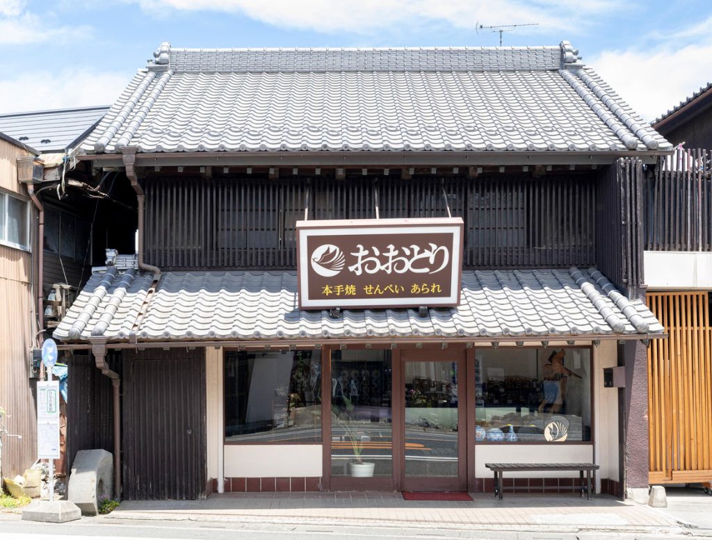 手焼き・堅焼き煎餅。おおとり特製醤油だれを染み込ませた定番の醤油味です。