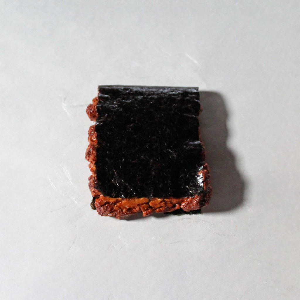 天日干し、手焼きで四角に焼いたおかきに有明のりを巻いたおかき。